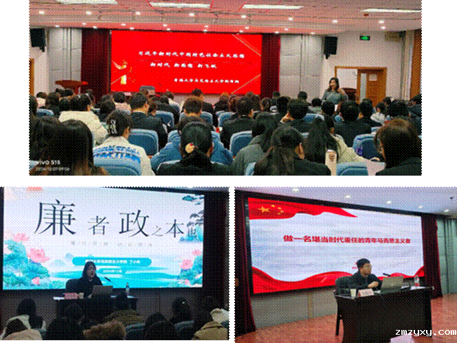 上午9:00-10:30由郑纳老师主讲了《新时代 新思想 新飞跃》,主要从大变革迎来新时代、新时代带来新课题、新课题呼唤新思想、新思想引领新发展等四个方面进行讲解,让同学们对马克思主义有了新的认识。上午10:50-12:20由丁小凤老师主讲了《廉者,政之本也》,从一些历史贤吏为官之道以及从中获取的启示入手讲解了何为廉政,为我们讲解了现代廉洁人物焦裕禄、孔繁森的事迹和我党的反腐斗争历程。最后,倡导新时代青年要筑牢反腐倡廉的堤坝。下午14:00-16:00由张耀东老师主讲了《做一名堪当时代重任的青年马克思主义者》,从“什么是‘青马工程’?什么是青年马克思主义者?什么是马克思主义?”这三个问题展开讲解,让同学们对一系列问题有了清晰的认知,更加坚定了对马克思主义的信仰。